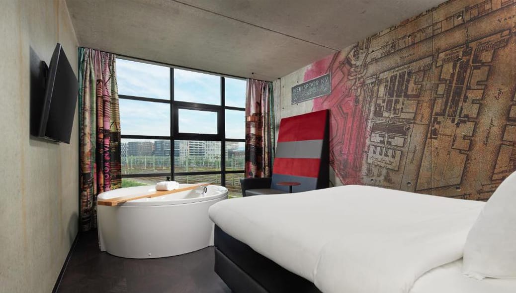 Einige Zimmer bieten besondere Annehmlichkeiten wie eine private Sauna oder einen Whirlpool samt Panoramablick auf Amsterdam.